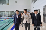 지이코노미 정길종 기자 |충남 체육의 구심점이자 도민 생활체육의 산실이 될 충남스포츠센터가 마침내 문을 열었다. 충청남도는 28일 내포신도시 충남스포츠센터 다목적체육관에서 김태흠 지사와 체육계 관계자, 도민 등 800여 명이 참석한 가운데 개관식을 개최하고, 도내 체육 인프라의 새로운 출발을 알렸다. 충남스포츠센터는 예산군 삽교읍 내포신도시 환경클러스터 내 2만 615㎡ 부지에 총사업비 592억 원을 투입해 건립됐다. 센터는 ▲수영장 및 통합운영센터 ▲다목적체육관 등 2개 동으로 구성되며, 총 연면적은 1만 3318㎡에 달한다. 수영장 및 통합운영센터는 연면적 9857㎡ 규모(지하 1층·지상 2층)로, 50m 8레인과 228석 관람석을 갖춰 3급 공인 수영장으로 인증받을 예정이다. 도민체전과 시도 대회 등 각종 수영대회를 유치할 수 있는 수준의 시설이다. 또한 통합운영센터에는 충남체육회와 장애인체육회 사무실, 회의실, 의무실 등이 함께 입주한다. 다목적체육관은 연면적 3462㎡ 규모로, 배구·농구·배드민턴 등 다양한 종목 경기와 프로그램 운영이 가능한 공간으로 꾸며졌다. 주차장은 총 182면(수영장·운영센터 143면, 체육관 39면)이 마련됐다. 운영은 충남