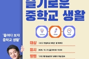 지이코노미 최영규 기자 | 구로구(구청장 장인홍)가 10월 31일 초등학교 6학년 학생과 학부모를 대상으로 중학교 입학 전 알아야 할 주요 정보를 안내하는 ‘슬기로운 중학교 생활’ 프로그램을 유튜브 생방송으로 운영한다. 이 프로그램은 중학교 입학을 앞둔 학생과 학부모가 겪는 막연한 불안과 궁금증을 해소하고 입학 전 필요한 정보를 미리 습득할 수 있도록 마련됐다. 자유학기제, 교과목 구성, 성적 평가 방식 등 실질적인 중학교 생활 전반을 알기 쉽게 소개한다. 방송은 10월 31일 오전 9시 50분부터 40분간 구로구청방송센터 유튜브 채널을 통해 실시간 송출된다. 강의는 고척중학교 남연호 진로교사와 구일중학교 황정희 진로교사가 맡아 교육 현장의 생생한 경험과 실질적인 조언을 전달한다. 별도의 신청 절차 없이 누구나 시청 가능하며, 방송 시간에 맞춰 유튜브 채널에 접속하면 된다. 방송 종료 후에는 2026년 2월 28일까지 녹화본 시청도 가능하다. 실시간 질의응답 시간도 마련돼 궁금한 점을 바로 질문하고 답변받을 수 있다. 자세한 내용은 구로구청 진로진학팀으로 문의하거나 구로구청 누리집에서 확인할 수 있다. 장인홍 구로구청장은 “중학교 입학을 앞둔 학생과 학부모에