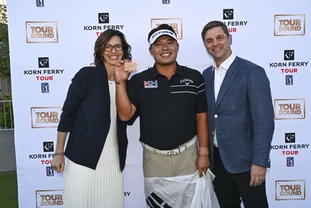 최정원이 우승 트로피를 들고 포즈를 취했다. 이하 사진: KLPGA 제공 지이코노미 김대진 기자 | 최정원(20,NH투자증권)이 한국여자프로골프(KLPGA) 2부 투어인 드림투어에서 첫 우승을 달성했다. 최정원은 14일 전남 무안 컨트리클럽(파72·6,420야드)에서 열린 KLPGA 2025 무안CC·올포유 드림투어 18차전(총상금 7,000만 원) 최종 2라운드에서 보기 없이 버디 8개로 8언더파 64타를 쳤다. 최정원의 아이언샷 최종 합계 14언더파 130타를 기록한 최정원은 2위 박예지(11언더파 133타)를 3타 차로 제치고 우승을 차지했다. 우승 상금은 1,050만 원이다. 이번 대회 우승으로 시즌 상금 1,361만3,500원을 기록한 최정원은 드림투어 상금순위를 34위까지 끌어올렸다. 7월 KLPGA 투어 준회원으로 입회한 최정원은 1주일 만에 솔라고 점프투어(3부) 9차전에서 우승했고, 8월 정회원으로 승격하며 드림투어로 옮긴 뒤 여섯 번째인 이번 대회에서 트로피를 들어 올렸다. 최정원은 "올 시즌 남은 왕중왕전에서도 좋은 성적을 내 정규투어 시드를 꼭 확보하고 싶다. 내년 정규투어에 데뷔해 신인상에 도전하고 싶다"고 말했다. 최정원이 동료 선수