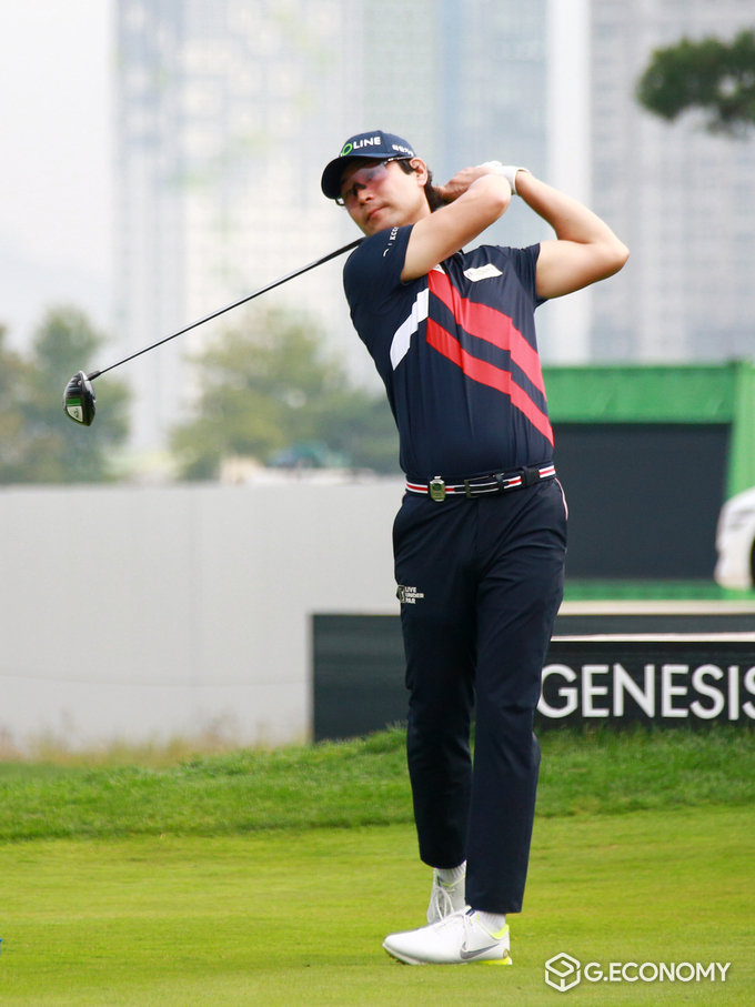 송도 = 지이코노미 조도현 기자 | 국내 최대 상금 규모의 ‘2021 제네시스 챔피언십’이 10월 7일(목)부터 10일(일)까지 인천 송도에 위치한 ‘잭 니클라우스 골프클럽 코리아’에서 개최된다. 김대현이 10번홀 티 샷 하고 있다.