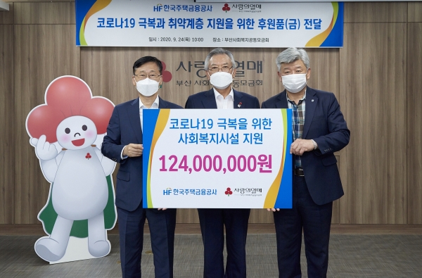 주택금융공사가 부산 사회복지공동모금회에 1억2400만원 상당의 물품과 기부금을 전달했다.