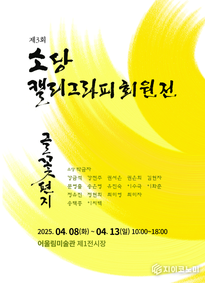 전시회는 4월 13일(일)까지 열리니 관심 있는 분들은 방문해 소당 캘리그라피의 예술 세계를 직접 느껴보시길 바랍니다.