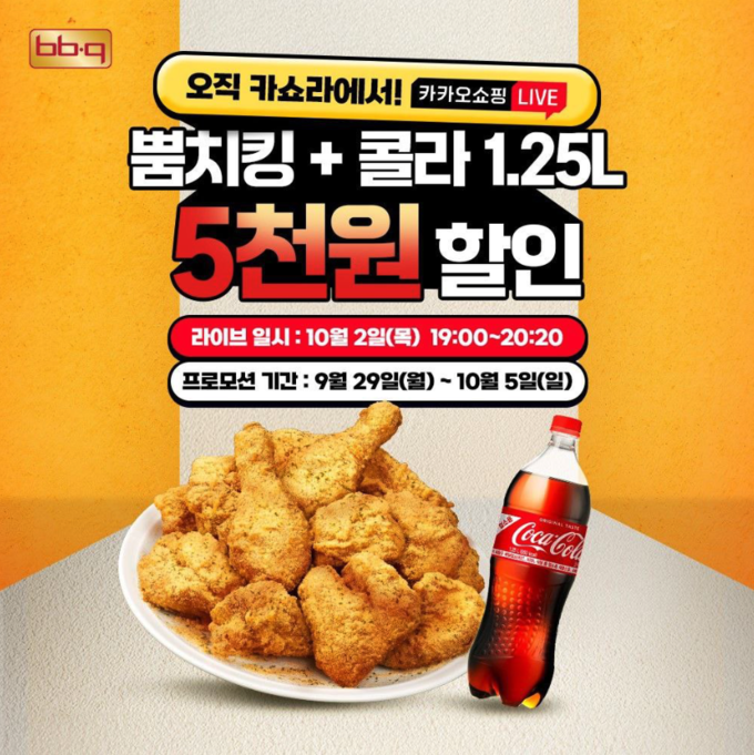 카쇼라 방송은 오는 2일 오후 7시부터 8시 20분까지 총 80분간 진행된다. 방송시간 내 해당 세트를 구매하고 이를 인증한 고객 50명을 랜덤으로 추첨해 ‘BBQ 모바일 금액권 1만원권’을 증정할 예정이다.