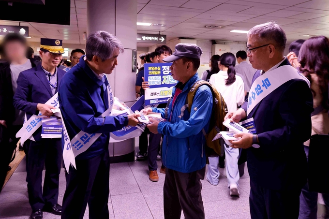서울교통공사가 1일 아침 1호선 시청역에서 노사 합동으로 지하철 무임손실 국비 보전을 촉구하는 대시민 캠페인을 벌였다고 밝혔다.