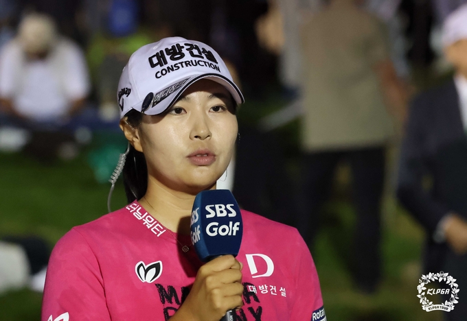 지난 주 KLPGA 투어 '하이트진로 챔피언십'에서 우승하고 난 뒤 방송사 인터뷰에 나선 성유진  사진: KLPGA 제공