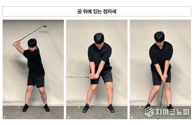 톱스윙에서 다운스윙으로 바뀌는 시점에 왼쪽 어깨와 턱이 멀어진다는 느낌을 주는 것도 좋은 연습 방법이다.
