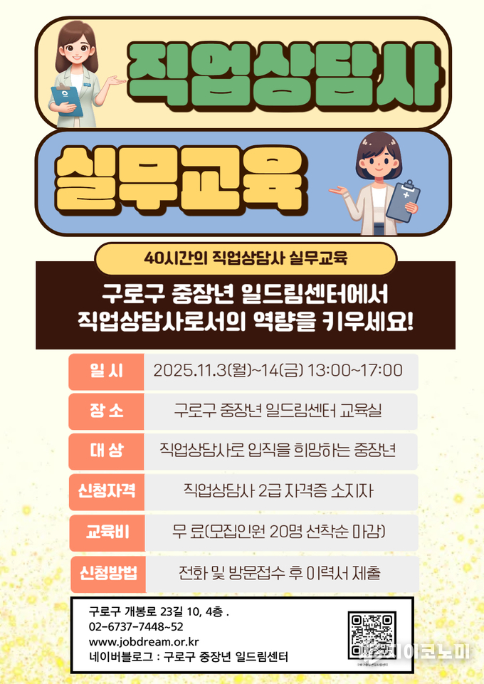 지이코노미 최영규 기자 | 구로구(구청장 장인홍)가 중장년일드림센터 11월 프로그램 수강생을 모집한다.
