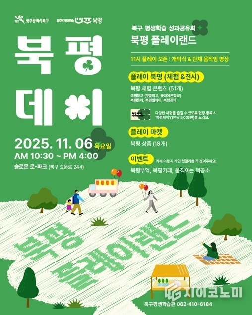 지이코노미 한정완 기자 | 광주광역시 북구(구청장 문인)가 올 한 해 추진한 평생학습 사업의 성과를 공유하는 ‘2025 북평데이, 북평 플레이랜드’ 행사를 오는 6일 솔로몬 로파크(북구 오문로 244)에서 개최한다고 4일 밝혔다.