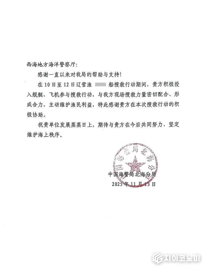 사고 직후 곧바로 광역구조본부를 가동한 서해해경의 대응은 중국 측에도 강렬한 인상을 남겼고, 결국 중국 해경국 북해분국은 공식 감사 서한을 보내며 “생명을 구하는 일에 국경은 없다”는 메시지를 건넸다.