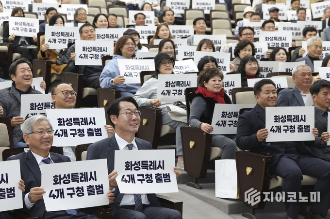 지이코노미 최영규 기자 | 화성특례시(시장 정명근)는 20일 시청 대강당에서 ‘구청 출범 서포터즈단’ 발대식을 개최하고 시민 참여를 기반으로 한 구청 체제 출범 준비에 박차를 가했다.