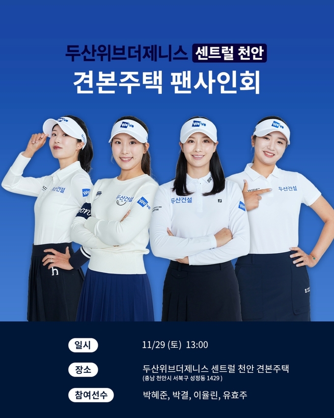 두산건설 관계자는 “올해 4승을 거둔 골프단의 의미 있는 시즌을 기념하며, 선수들이 직접 고객을 찾아 감사 인사를 전하고자 이번 행사를 기획했다”며 “이번 팬 미팅이 방문객들에게 특별한 경험이 되는 동시에, 두산건설의 고품격 주거 철학과 문화적 감성을 자연스럽게 느낄 수 있는 시간이 되기를 바란다”고 전했다.