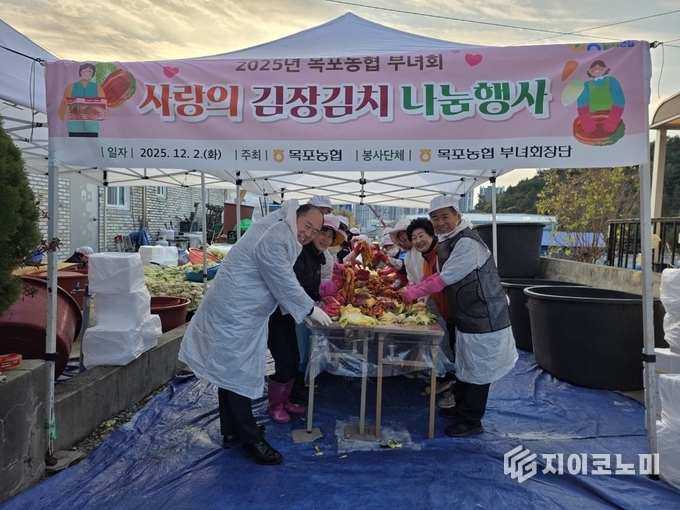 지이코노미 김정훈 기자 | 겨울 초입, 찬바람이 매섭게 불던 11월의 끝자락. 목포농협(조합장 박정수)은 올해도 어김없이 '사랑의 김장김치 나눔 행사'를 열고, 소외된 이웃에게 따뜻한 마음을 전했다. 11월 30일부터 12월 2일까지 사흘간 이어진 행사엔 임직원과 부녀회장단 등 20여 명이 한데 모여, 800포기의 김치를 정성껏 담갔다.