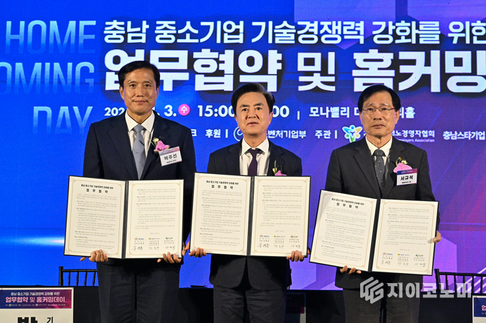지이코노미 정길종 기자 |충남도는 3일 아산 디바인밸리에서 ‘충남 중소기업 기술 경쟁력 강화를 위한 업무협약식’을 개최하고 도내 혁신 기업의 연구개발부터 사업화까지 전 단계를 지원하는 전주기 지원체계 구축에 나섰다.