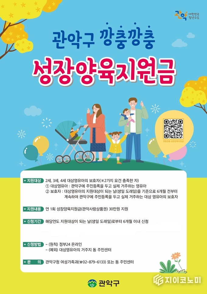 지이코노미 최영규 기자 | 관악구(구청장 박준희)가 미래 세대의 건강한 성장을 돕고, 지역 내 양육 가정에 실질적인 도움을 제공하기 위해 깡충깡충 성장양육 지원사업을 추진하고 있다.
