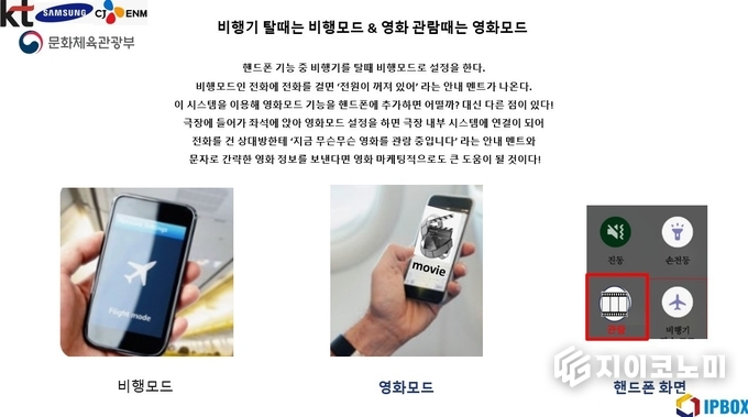 지이코노미 정길종 기자 |아이피박스미디어1 박경수 대표가 스마트폰에 ‘영화모드’ 기능을 탑재하는 아이디어를 국내 주요 기업과 기관에 제안하며 영화 시장 활성화 가능성을 모색하고 있다.
