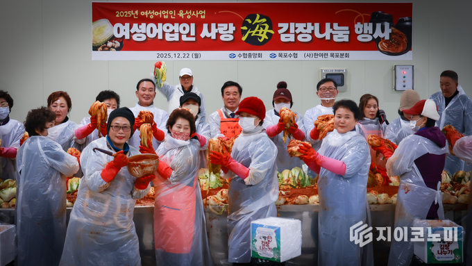 지이코노미 김정훈 기자 | 목포수협(조합장 김청룡)과 (사)한국여성어업인연합회 목포수협 분회가 22일 ‘2025 사랑海 김장나눔 행사’를 열고, 동절기 소외계층에게 전달할 3,000kg의 김장김치를 담가 지역사회에 따뜻한 손길을 더했다.