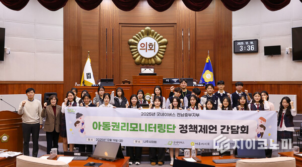 지이코노미 김정훈 기자 | 나주시의회가 지역 아동·청소년의 건강권을 제도적으로 보장하기 위한 논의에 한걸음 더 다가섰다. 지난 19일, 굿네이버스 전남중부지부 아동권리모니터링단 ‘굿모션(Good Motion)’과 함께 정책제언 간담회를 열고 조례 제정 방향을 구체적으로 살폈다.