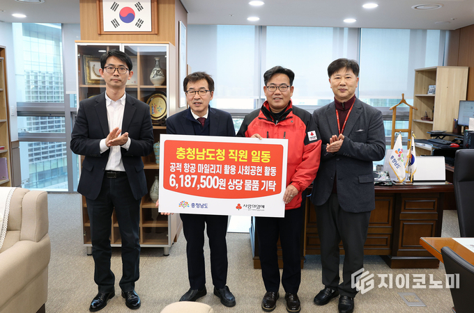 지이코노미 정길종 기자 |충청남도가 공적 항공마일리지를 활용해 마련한 생활용품을 충남사회복지공동모금회에 기탁하며 따뜻한 지역사회 만들기에 동참했다.