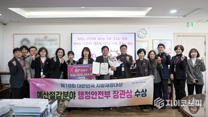 지이코노미 최영규 기자 | 마포구(구청장 박강수)는 12월 17일, 행정안전부가 주관한 ‘제18회 대한민국 지방재정대상’에서 예산절감 분야 행정안전부 장관상을 수상하고 인센티브로 특별교부세 1억 원을 확보했다.