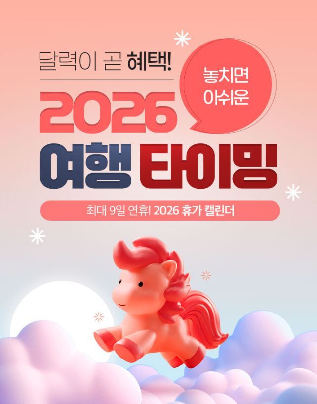 지이코노미 양하영 기자 | 노랑풍선이 내년 상반기 달력에 포진한 공휴일을 전략적으로 활용해 해외여행을 준비하는 이들을 위한 특별한 장을 마련했다. 노랑풍선은 2026년 1월부터 6월까지 공휴일과 연휴 기간을 활용해 여행을 계획하는 고객을 위해 ‘2026 놓치면 아쉬운 여행 타이밍’ 기획전을 진행한다고 9일 밝혔다.