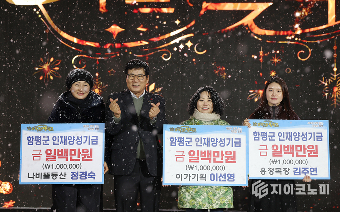 폐막식에는 나비축제 경연대회 수상자 ‘달뜬’과 브라스밴드의 공연이 펼쳐졌으며, 축제 참여 업체인 용정목장·이가기획·나비뜰동산은 각각 100만 원씩 함평군 인재양성기금에 기부하며 따뜻한 나눔을 실천했다.
