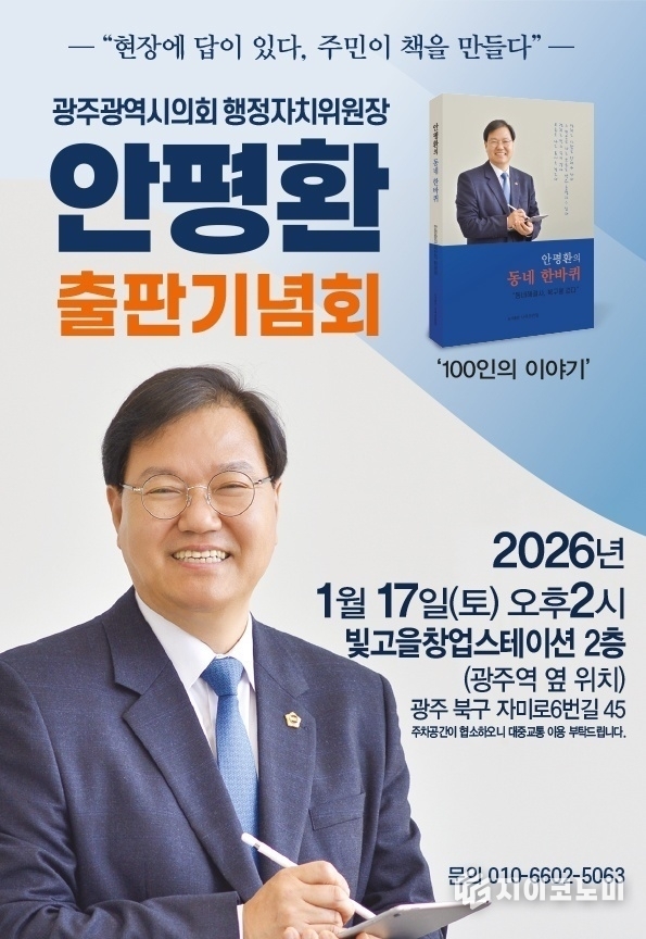 지이코노미 한정완 기자 | 광주광역시의회 행정자치위원장인 안평환 시의원이 주민 참여를 기반으로 한 의정활동의 과정을 한 권의 책으로 정리했다. 안 의원은 주민과 함께 현장을 걷고 문제를 듣는 방식으로 축적해 온 의정 성과를 담은 책 『안평환의 동네한바퀴 – 동네해결사 북구를 걷다』를 출간하고, 오는 1월 17일 광주에서 출판기념회를 연다.