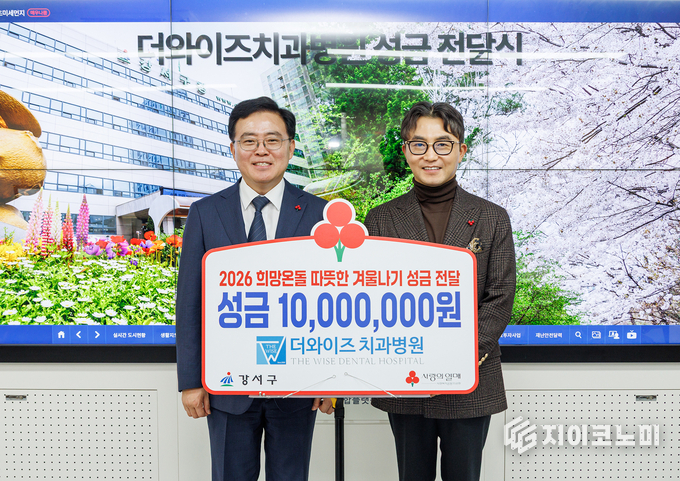 지이코노미 최영규 기자 | 서울 강서구(구청장 진교훈)는 16일(금) 화곡동 더와이즈치과병원(대표원장 임세웅)으로부터 이웃돕기 성금 1천만 원을 전달받았다.