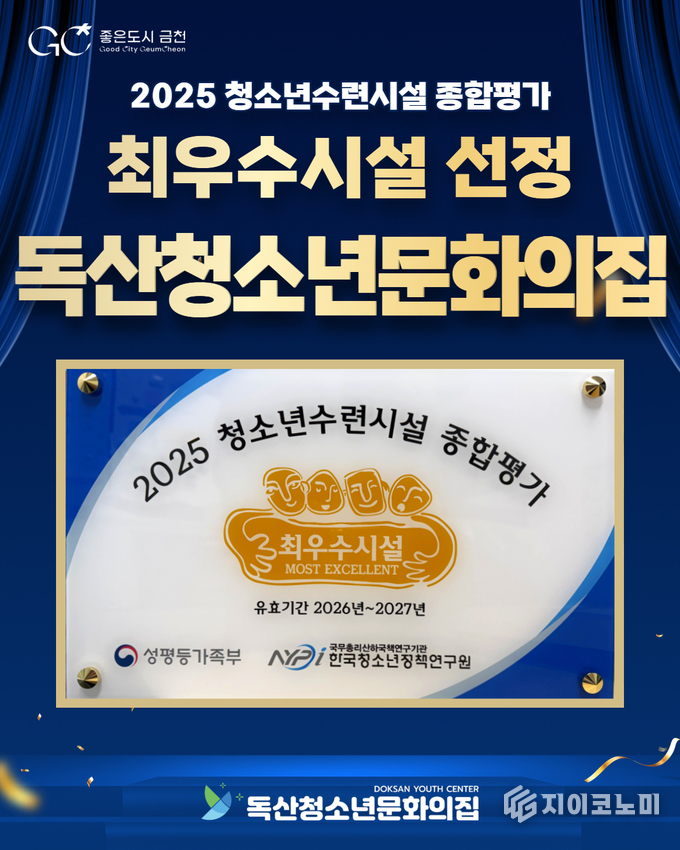 지이코노미 최영규 기자 | 금천구(구청장 유성훈)는 독산청소년문화의집이 성평등가족부 주관 ‘2025년 청소년수련시설 종합평가’에서 최우수기관으로 선정됐다고 밝혔다.