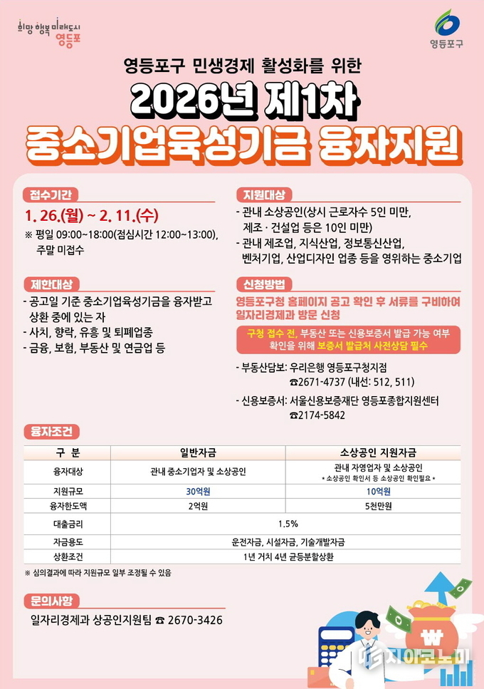 지이코노미 최영규 기자 | 영등포구(구청장 최호권)가 경기 침체로 경영 부담이 가중되고 있는 관내 소상공인과 중소기업을 위해 자금 지원과 판로 개척을 동시에 지원한다고 밝혔다.