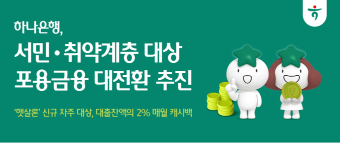 하나은행 포용금융상품부 관계자는 “이번 이자 캐시백 프로그램을 시작으로 서민·취약계층이 제도권 금융에서 보다 낮은 비용으로 원활하게 자금을 이용할 수 있도록 지속적으로 포용금융 신사업을 발굴·추진하겠다”고 밝혔다.