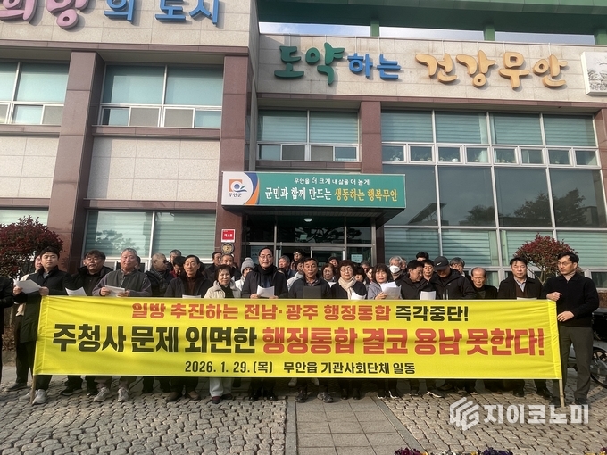 무안읍 기관사회단체협의회는 29일 성명서를 내고 “최근 발표된 전남·광주 행정통합 합의는 도민과 주민의 목소리가 빠진 졸속 결정”이라며 강한 유감을 표했다. 협의회는 특히 통합 자치단체 명칭과 청사 분산 운영 방안이 간담회 직후 공개된 점을 문제 삼았다.