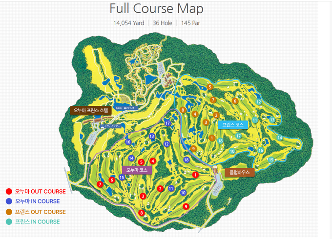코스는 오누마와 프린스 코스가 각각 아웃과 인으로 총 36개 홀이다. 파145로 전장이 1만4,54야드다.