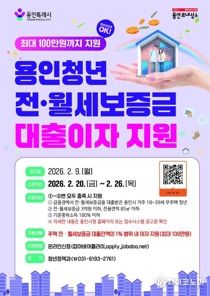 지이코노미 최영규 기자 | 용인특례시(시장 이상일)는 청년층의 주거비 부담을 덜고자 전월세 보증금 대출이자를 지원한다고 6일 밝혔다.