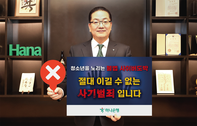지이코노미 양하영 기자 | 하나은행(은행장 이호성)은 청소년 도박을 예방하고, 불법 사이버 도박의 위험성에 대한 사회적 인식 확산을 위한 「청소년 도박 근절 릴레이 캠페인」에 이호성 하나은행장이 동참했다고 밝혔다. 서울경찰청이 주관하는 이번 캠페인은 청소년 불법도박에 대한 범국민적 인식 제고를 위해 “청소년을 노리는 불법 사이버 도박, 절대 이길 수 없는 사기 범죄입니다”라는 메시지를 전파하는 방식으로 진행된다.