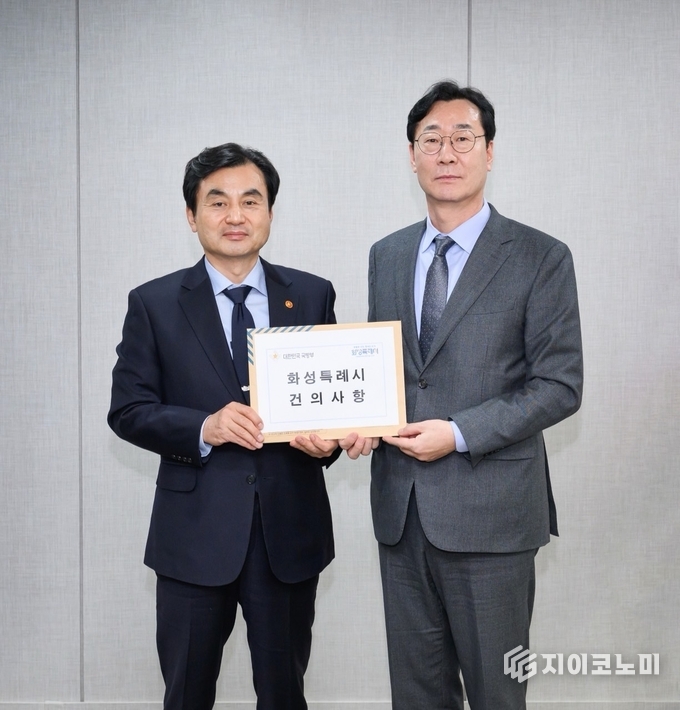 지이코노미 최영규 기자 | 화성특례시(정명근 시장)는 11일 서울 용산구 국방부장관실에서 안규백 국방부장관을 면담하고, 106만 화성시민의 염원을 담아 수원군공항 예비이전후보지 화옹지구 지정철회와 사업전면 재검토를 요구하는 건의문을 전달했다.