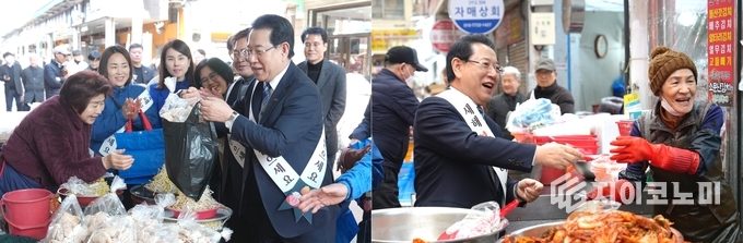 지이코노미 김정훈 기자 | 김영록 전라남도지사가 설 연휴에 들어간 지난 16일 여수 서시장과 순천 웃장을 찾아 전통시장 상인들과 만나 민생경제 상황을 점검했다.