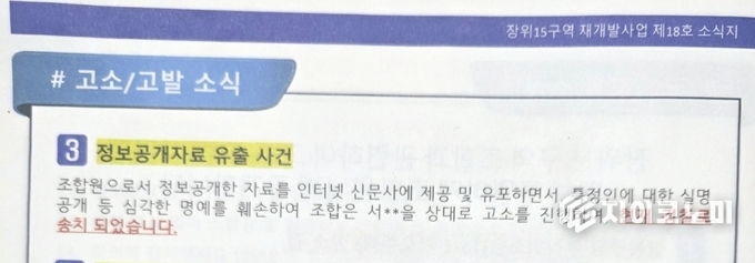 이에 앞서 본지는 장위15구역 내부에서 드러난 또 다른 핵심 문제, 즉 왜곡된 정보 전달과 고소 남발로 이어지는 조합 운영 구조를 짚어본다.