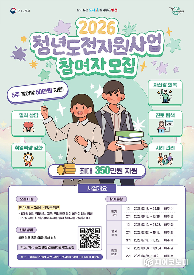 지이코노미 최영규 기자 | 양천구(구청장 이기재)는 구직을 단념한 청년을 대상으로 맞춤형 프로그램을 제공해 자신감 회복과 사회 진출을 돕는 ‘2026년 청년도전지원사업’을 3월부터 본격 추진한다고 밝혔다.