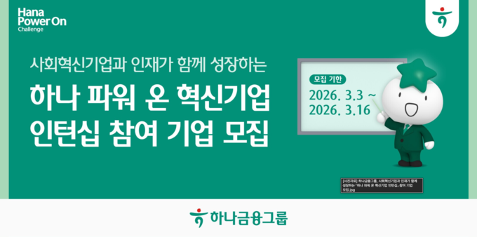지이코노미 양하영 기자 | 하나금융그룹(회장 함영주)은 사회혁신기업과 구직자의 동반성장을 지원하는 「하나 파워 온 혁신기업 인턴십」의 참여 기업 모집을 시작한다고 밝혔다.