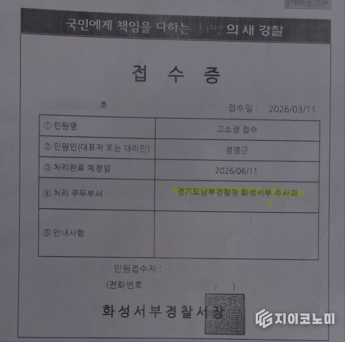 지이코노미 최영규 기자 | 정명근 화성특례시장은 11일 최근 화성지역 한 인터넷 언론사의 금품수수 의혹 보도에 대해 명예훼손 등의 혐의로 화성서부서에 고소장을 제출했다.