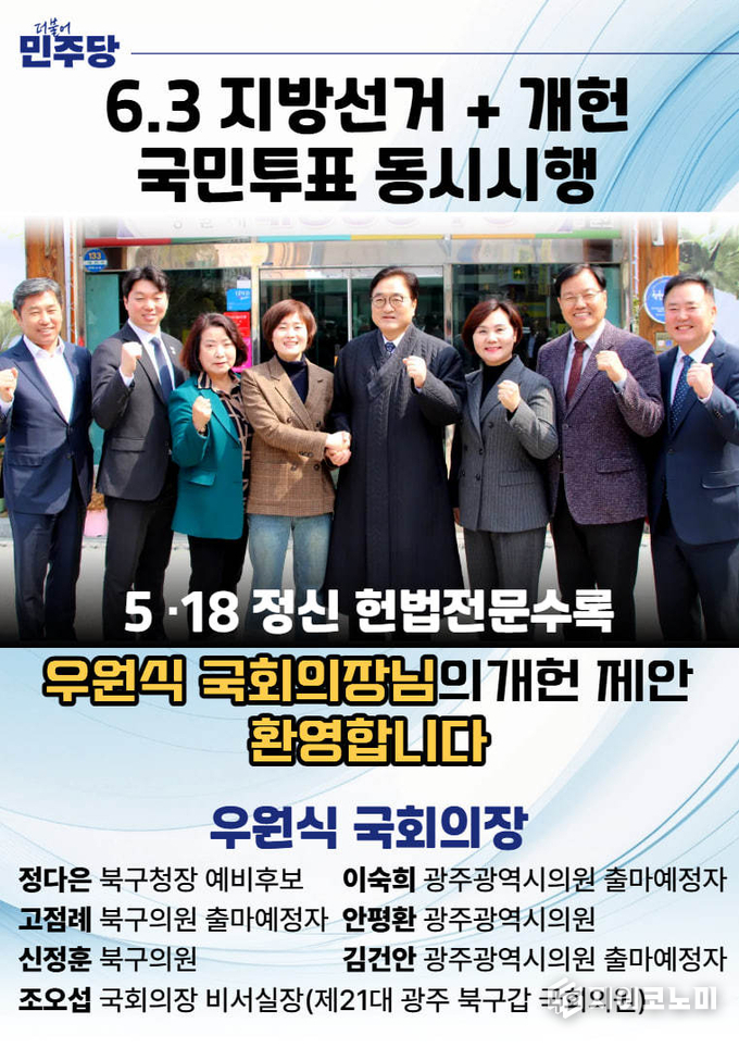 지이코노미 김정훈 기자 | 광주 북구 정치권에서 우원식 국회의장의 개헌 제안과 관련한 항의서한을 둘러싸고 논쟁이 이어지고 있다.
