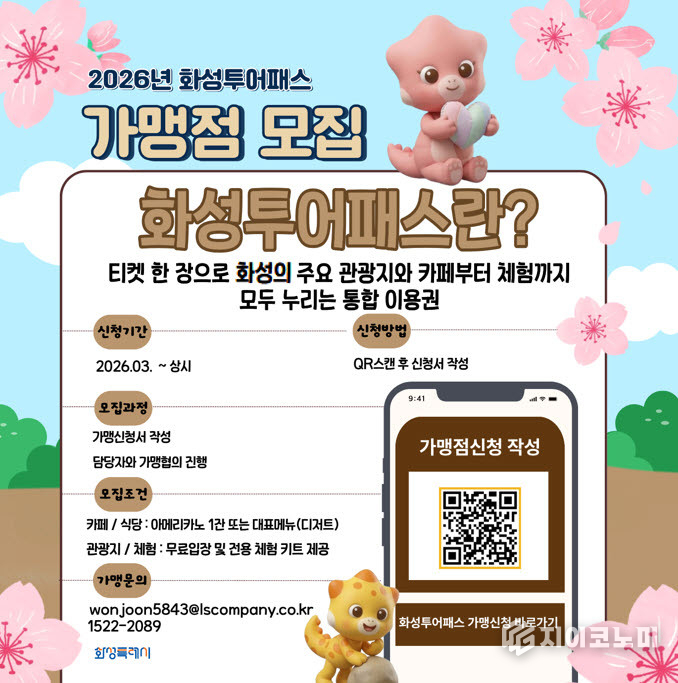 지이코노미 최영규 기자 | 화성특례시(시장 정명근)가 관내 주요 관광지를 자유롭게 이용할 수 있는 통합 자유이용권 ‘화성 투어패스’의 신규 가맹점을 상시 모집한다고 12일 밝혔다.