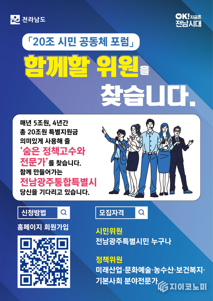 지이코노미 김정훈 기자 | 전라남도가 전남·광주 시·도민 누구나 정책 설계에 참여할 수 있는 ‘20조 시민공동체 포럼’ 온라인 플랫폼을 열었다. 대규모 재정을 시민 참여 방식으로 풀어내겠다는 구상이다.