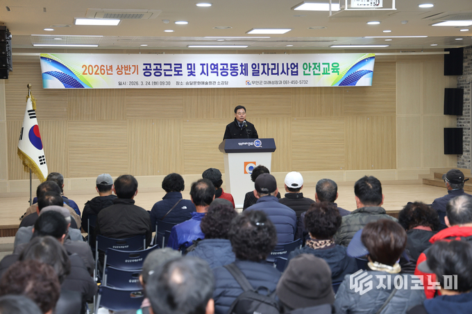 지이코노미 오명숙 기자 | 무안군은 24일 승달문화예술회관 소강당에서 2026년 상반기 재정지원 일자리사업 참여자 119명을 대상으로 안전보건교육을 진행했다.