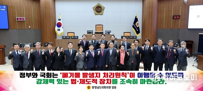 이에 충남도의회는 ▲발생지 처리 원칙의 실질적 이행을 위한 강제력 있는 법·제도 마련 ▲수도권 폐기물 지방 이전 구조 개선 및 공공성 강화 법률 추진 ▲국가 책임 아래 공공 폐기물 처리시설 확충과 주민 지원·상생 제도 법제화 등을 정부와 국회에 공식 촉구했다.