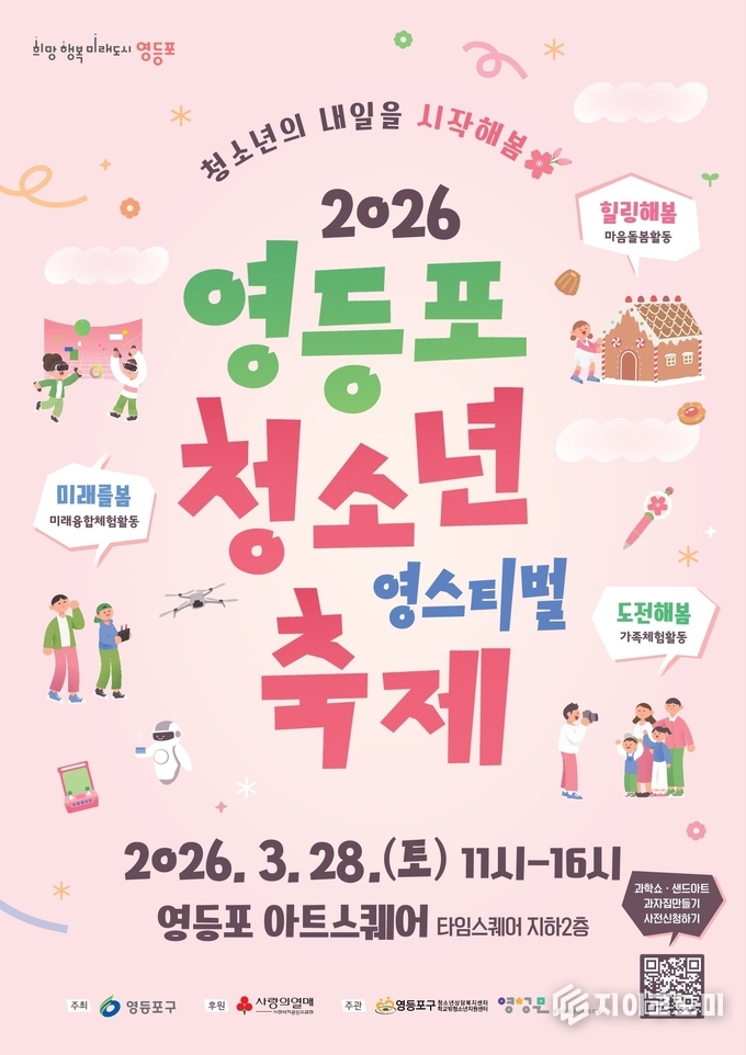지이코노미 최영규 기자 | 영등포구가 오는 3월 28일, 새 학기를 맞은 청소년들의 희망찬 출발을 응원하기 위해 영등포 아트스퀘어와 타임스퀘어 광장에서 청소년 축제 ‘영스티벌’을 개최한다고 밝혔다.