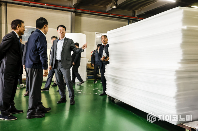 정명근 화성특례시장은 25일 오후 중동발 에너지 쇼크의 직격탄을 맞은 관내 보온재 제조 기업 ㈜한성하나론 공장을 방문해 생산라인을 점검하고 현장의 목소리를 청취했다.