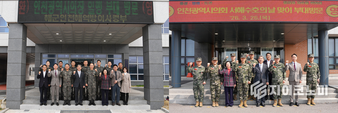 인천시의회는 지난 26일 정해권 의장을 비롯해 이선옥 제1부의장(국·남동구2), 임춘원 의회운영위원장(국·남동구1), 김대중 건설교통위원장(국·미추홀구2) 등과 함께 해군 인천해역방어사령부와 해병대 제2사단을 차례로 찾아 부대 관계자들과 환담을 나누고, 지역 안보 상황과 주요 부대 현안을 청취했다.