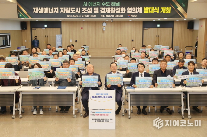 해남군은 27일 군청 대회의실에서 ‘재생에너지 자립도시 조성 및 경제활성화 협의체’ 발대식을 열고 관련 거버넌스를 공식 출범시켰다.