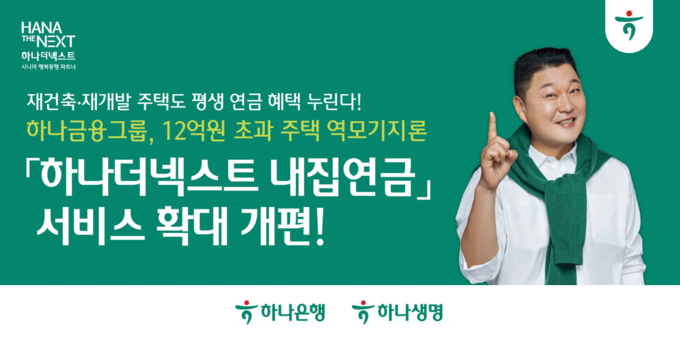 하나금융그룹 관계자는 “재건축ㆍ재개발 주택 보유자 등 더욱 많은 시니어 손님들의 안정적인 거주를 보장하고, 든든한 현금흐름으로 미래를 준비하실 수 있도록 ‘내집연금’ 서비스를 확대 개편했다”며, “앞으로도 시니어 세대의 성공적인 노후 해결책을 위한 포용적 시니어금융 모델을 지속적으로 확장해 나가겠다”고 밝혔다.
